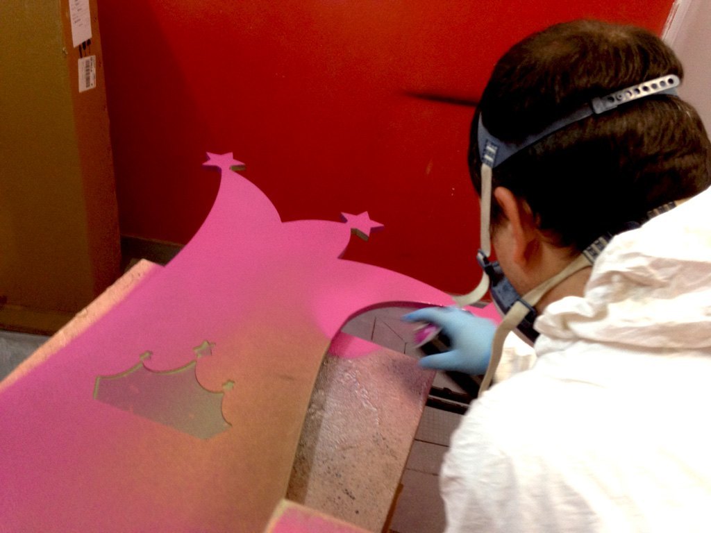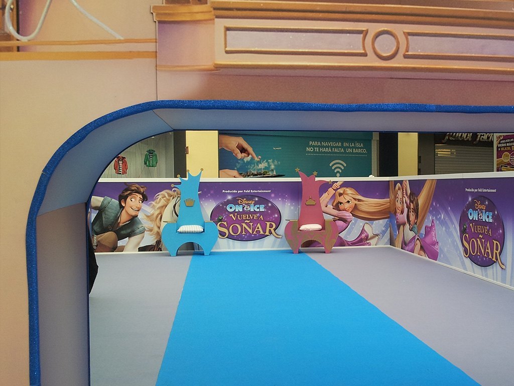 Tal vez uno de los proyectos más laboriosos a nivel de detalle y al mismo tiempo uno de los más gratificantes. Tanto el frontal como la trasera del castillo están construidos en composite de aluminio y poliuretano, fresado por planchas y rotulado paso a paso, con toda la paciencia y el mimo que merece un trabajo así.