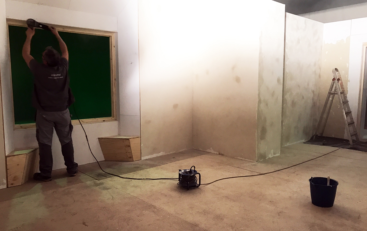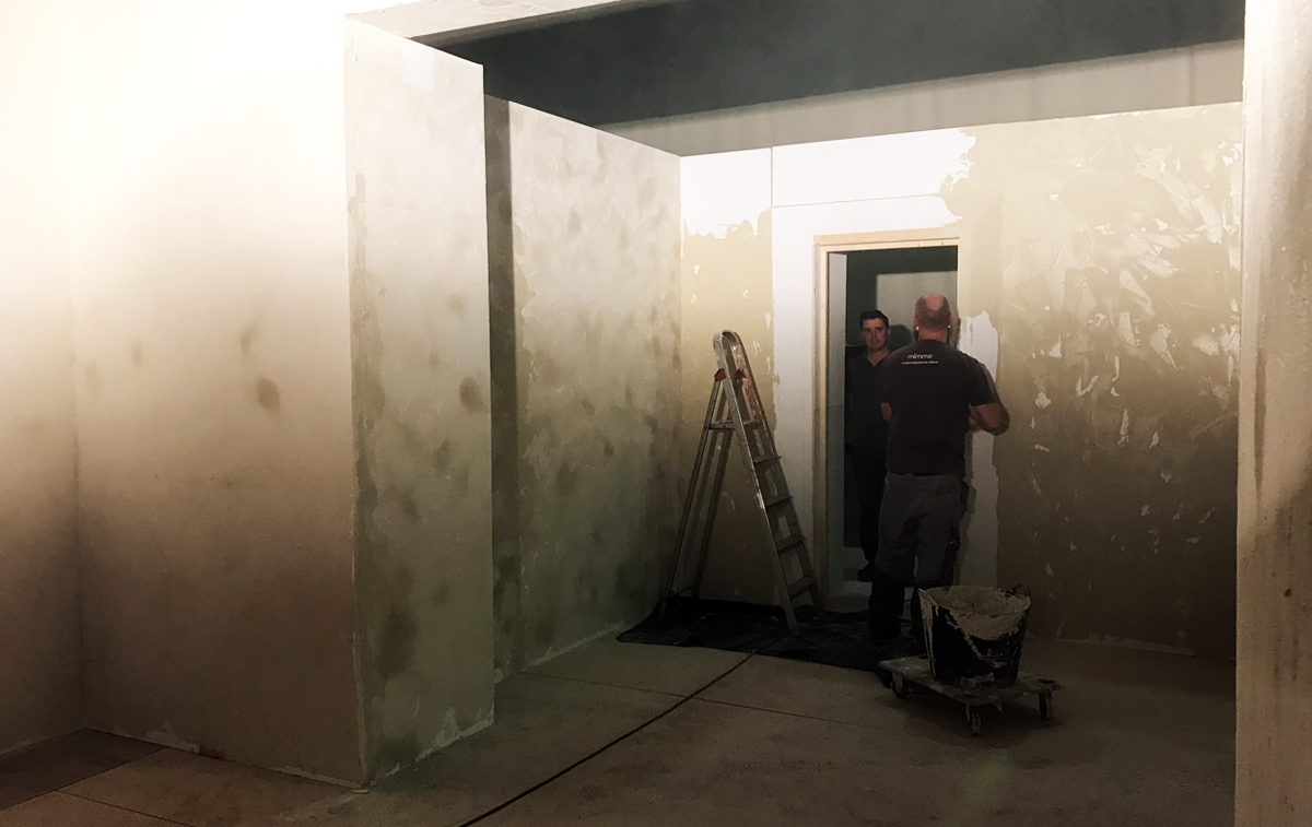 La exitosa productora Atípica Films nos encargó la materialización de algunas escenografías para la afamada serie de televisión La Peste. Un trabajo de construcción y tematización de suelos, paredes y techos, incluyendo molduras, puertas y ventanas de cuarterones con tallas en bajo relieve.
